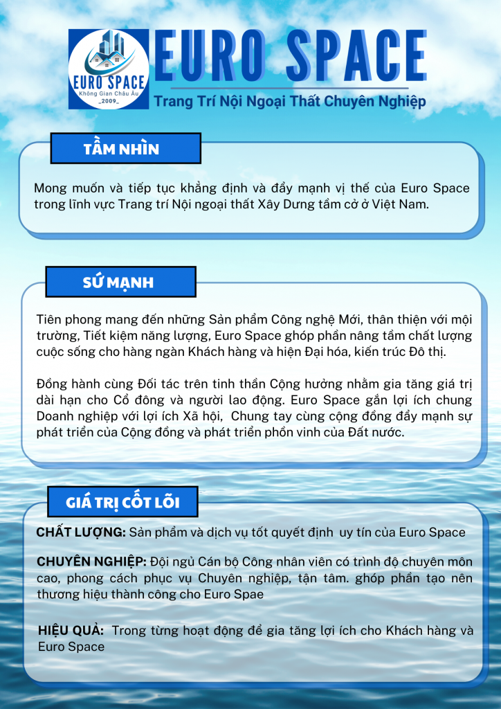 Công ty được thành lập từ năm 2009, Hoạt động trong lĩnh vực Xây dựng, Trang trí nội ngoại thất chuyên nghiệp. theo phong cách hơi hướngKHÔNG GIAN CHÂU ÂU, giá cạnh tranh